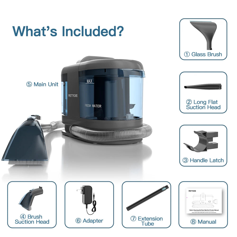• Dual Tank System : Features a 1.5L Fresh Water Tank and a 1.2L Dirty Water Tank to keep clean and waste water separate.